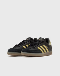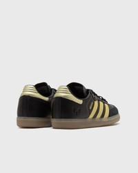 Represent Argentine Lionel Messi's passion on the pitch from beyond the touchline in these comfortable adidas Sambas. The 3-Stripes classic features player detailing and a signature leather upper and grippy rubber outsole. - Lace-up closure - Leather upper - Rubber outsole Article number: JR6349 Gender: women,kids Color: CBLACK/GOLDMT/GUM4 Material: 30% Rubber, 70% Synthetic/Textile