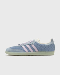 The adidas Samba OG shoes combine iconic style and comfort. Originally designed in the 1950s as an indoor soccer shoe, the Samba has evolved into a streetwear essential. This version revisits the authentic design of the original with a mesh-like leather upper. The shoe is lined with textile and leather, making every wear a pleasure. Classic Samba details include the T-toe, stitched heel tab and wide, thin tongue that adds a layer of comfort over your foot. - Lace-up closure - Mesh leather upper - Leather and textile lining - Rubber outsole Article number: JI3178 Gender: men,women Color: TACBLU/ICELAV/OWHITE Material: Upper material: 100% Synthetic/Textile