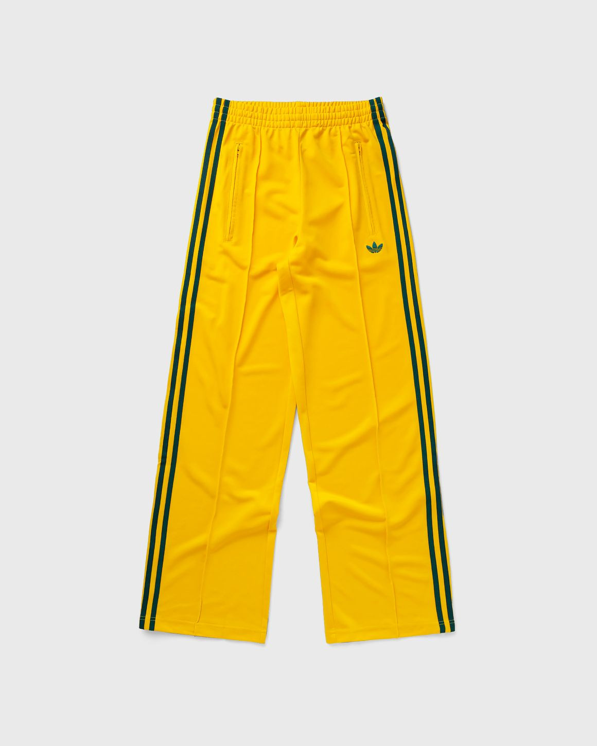 The classic Firebird track pants from adidas combine casual style and high wearing comfort. The smooth jersey fabric follows your every move, while the zippered pockets offer space for essentials. The loose, relaxed shape gives you plenty of freedom of movement, and the characteristic 3-Stripes on the legs ensure an iconic, sporty look. - Loose fit - Drawstring at the elastic waistband - Side zipped pockets This product is partly made of certified recycled material. Get sustainable products from Adidas now at BSTN! Article Number: JP2316 Gender: Women Color: CREYEL/CGREEN Material: 100% Polyester