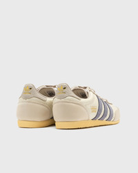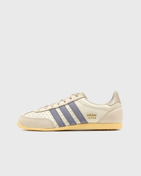Originally designed as a training shoe for professional athletes, the simple yet striking adidas Japan has been reissued for the streetwear scene. The milled leather upper feels soft and supple, while the perforations ensure breathability. The leather is double-stitched at the toe and heel for added durability and support, while the textured EVA midsole offers reliable stability. The jagged 3-Stripes, the lace overlays and the adidas Japan lettering in gold look are legendary details from the archives and round off the design. - Laces - Upper made of milled and perforated leather - Soft feel - Synthetic lining - Structured EVA midsole - Rubber outsole Article number: JI2664 Gender: women Color: CREWHT/SILVIO/WONBEI Material: Full: 100% Leather/Synthetic