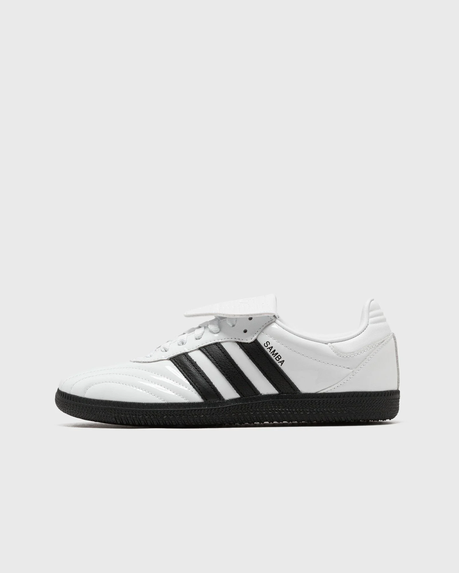 A nod to the label's '50s soccer archives, the LT shoes of the adidas Sambas features a fold-over tongue and eyelet detailing. This version is done in shiny patent leather, making it easy to wear with jeans and dressier outfits alike. - Lace-up closure - Leather upper - Leather lining - Rubber outsole Article number: JI2706 Gender: men,women Color: FTWWHT/CBLACK/FTWWHT Material: Upper material: 100% Synthetic/Textile