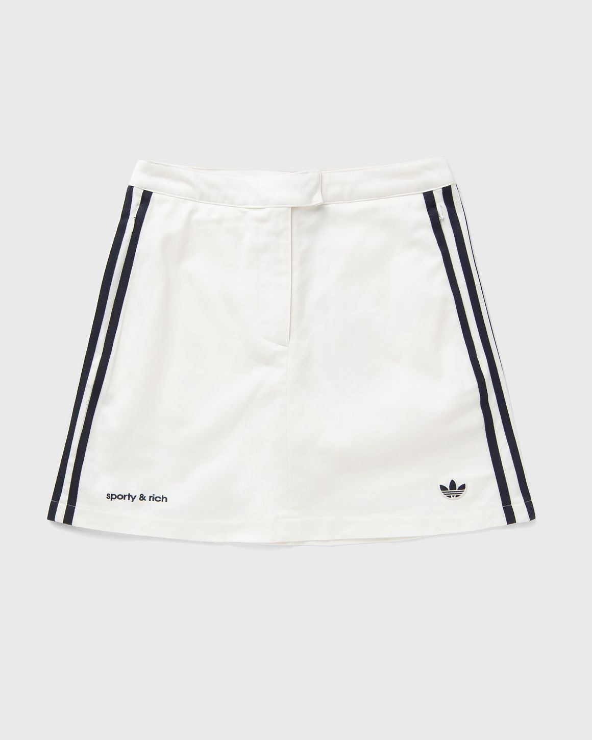 Pure court style served as the inspiration for this adidas x Sporty & Rich skort. With its soft, stretchy cotton material in muted, sophisticated colors, it conveys a feeling of casual lightness. Contrasting 3-Stripes and the adidas and Sporty & Rich logos complete the design. - Button fastening - Side pockets - Co-branding This product is partly made of certified recycled material. Get sustainable products from Adidas now at BSTN! Article Number: JL7194 Gender: Women Color: CWHITE/NTNAVY Material: 97% Cotton, 3% Spandex/elastane