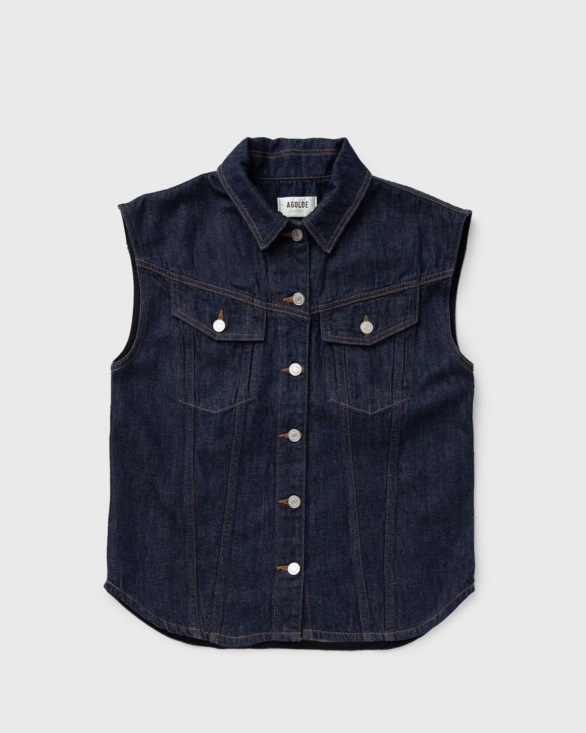 Crafted in the label’s signature weightless organic cotton - the Agolde Evan shirt can be worn button up as a shirt or worn open layered over a tank top. - Button closure - Buttoneed chest pockets - Sleeveless Article Number: A7305-3018 Gender: Women Color: RUP Material: Full: 100% Cotton