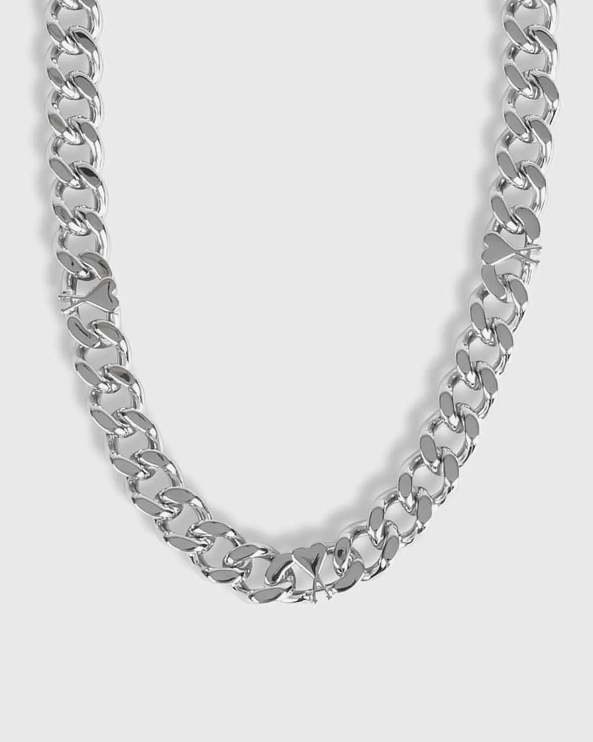 The AMI Paris ADC Chain Necklace effortlessly enhances any look. It consists of elegant metal links with the brand's signature logo and fastens with a lobster clasp. - 100% brass - Silver-plated - Lobster clasp - Engraved branding Article Number: UJW928.361-900 Gender: Men Color: ARGENT Material: 100% LAITON