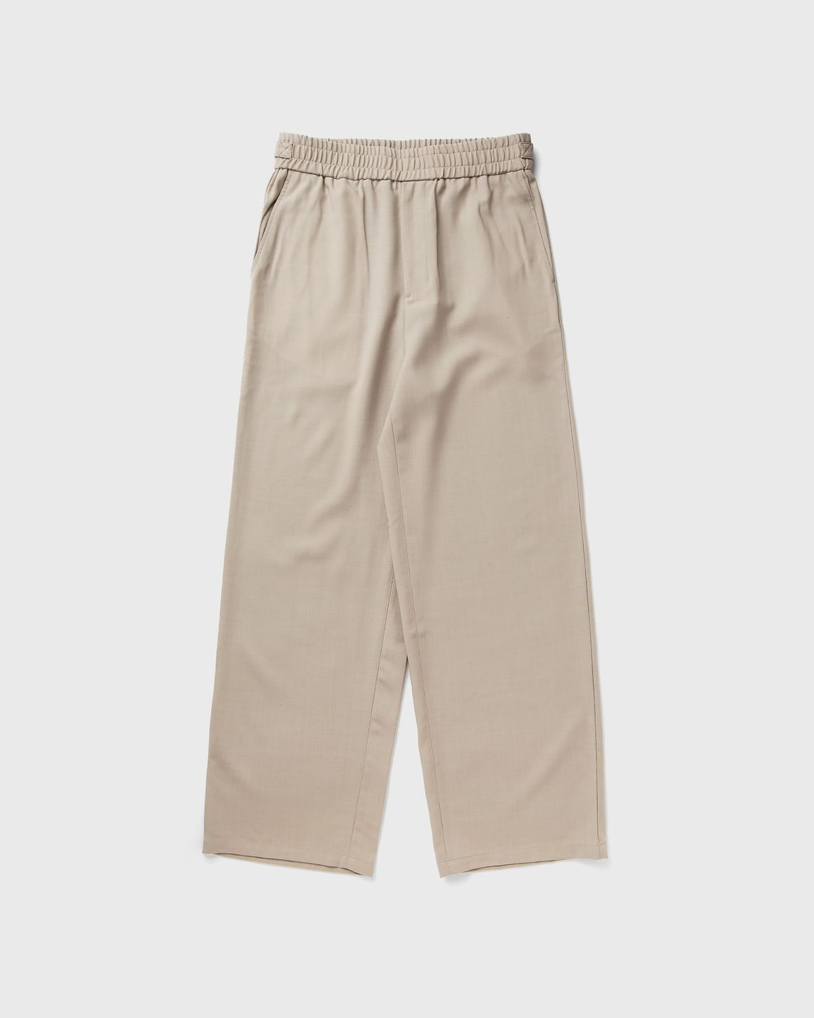 The AMI Paris Wool Elasticated Trousers combine classic style with modern comfort. Made from lightweight wool twill, they offer a relaxed fit with an elasticated waistband for optimal freedom of movement. The clean lines and minimalist aesthetic make them versatile. - Elasticated waistband - Zip fastening - Patch pockets on the back - Ami de Coeur rivet on the back pocket - Buckle straps in nickel color Article Number: HTR827.WV0066-229 Gender: Men Color: CAFE CREME Material: 100% Wool