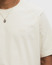 The AMI Paris T-shirt impresses with its soft organic cotton jersey and relaxed cut. Discreet, tonal embroidery adds a subtle accent. With raglan sleeves and a ribbed round neckline, it offers comfort and style. - Round neckline - Short sleeves - Logo embroidery Article Number: UTS334.JE0172-185 Gender: Men Color: IVOIRE Material: 100% Cotton