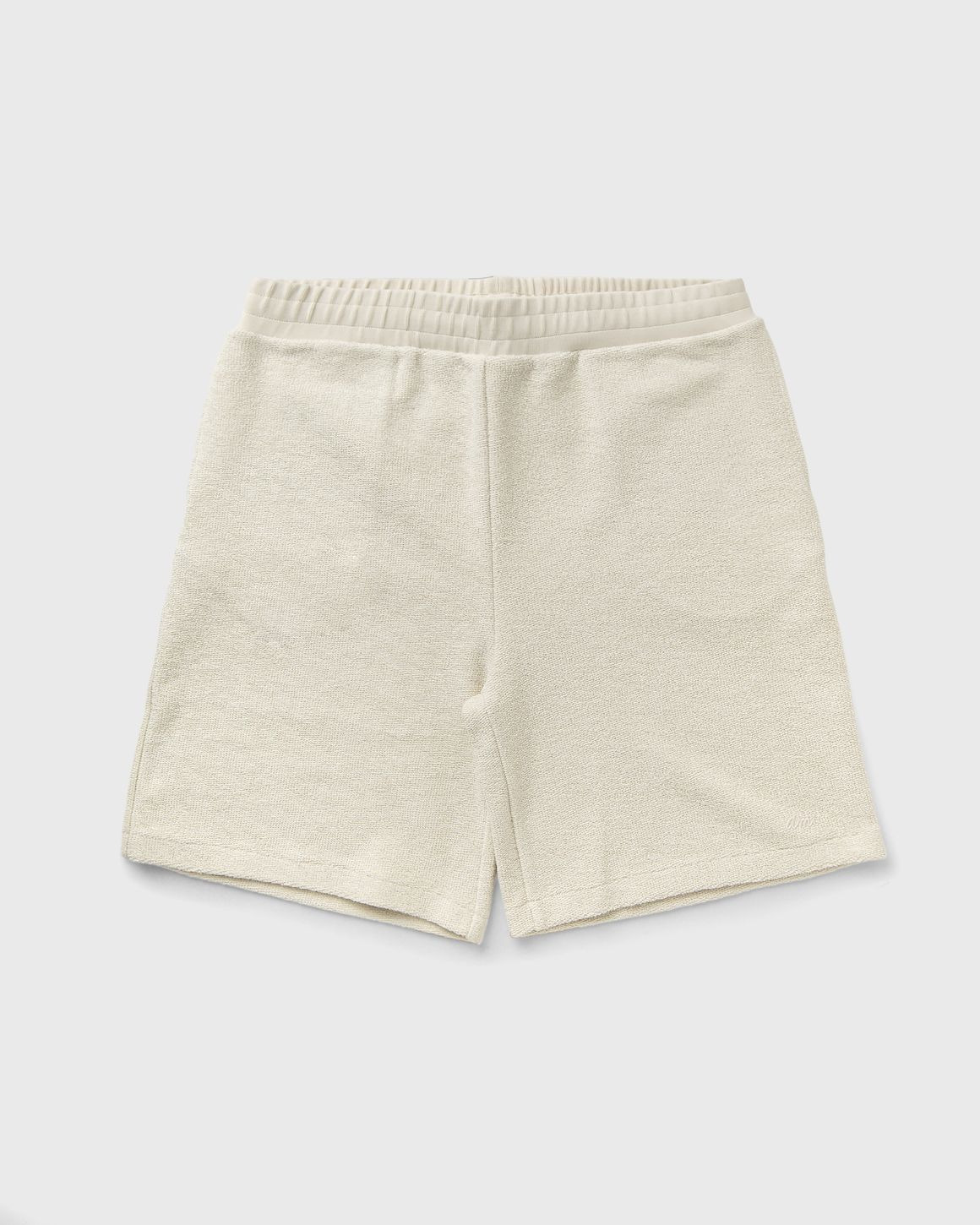 The Ami Paris Curly Fleece Shorts are a high-quality basic made from soft cotton fleece. They have a loose, comfortable cut with an elasticated waistband and side pockets. The discreet Ami de Coeur logo on the front adds a subtle accent. - Shorts made from mercerized cotton - Relaxed fit - Side pockets - Back patch pocket - Colour-coordinated drawstring inside the waistband and embroidered buttonholes - Colour-coordinated cursive ami embroidery on the front Article Number: HSO802.JE0169-185 Gender: Men Color: IVOIRE Material: 70% Cotton, 30% Polyester