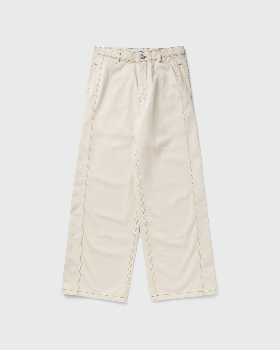 These jeans from AMI Paris impress with their modern, wide cut and ensure a relaxed look. Made from high-quality cotton, they are comfortable to wear and offer long-lasting quality. - Very wide fit - Classic waist cut - Very wide leg - Button closure - Nickel-colored metal jeans rivets and buttons - 5-pocket design - Contrasting topstitching Article Number: HTR820.DE0106-150 Gender: Men Color: ECRU Material: 100% Cotton