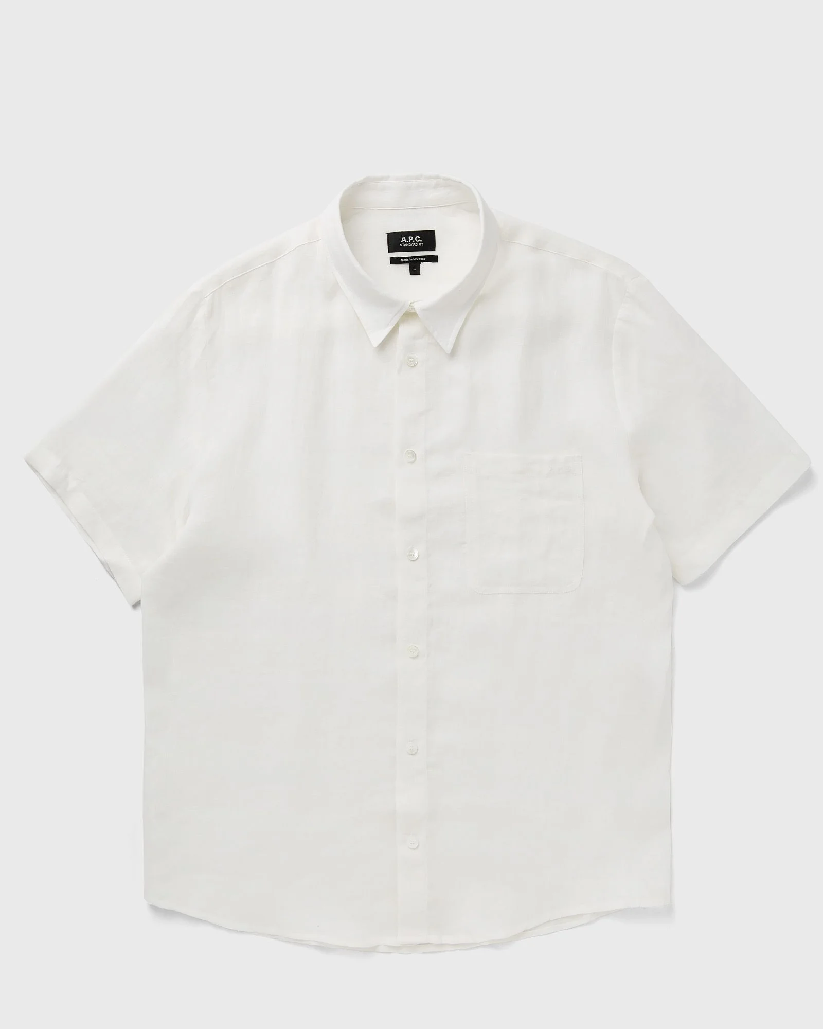 The A.P.C. Bellini short sleeve linen shirt is the epitome of sleek elegance. The carefully crafted, straight silhouette with a classic collar and tone-on-tone branding perfectly reflects the label's signature minimalism and great craftsmanship. - Straight cut - Classic collar - Pocket over the heart - Tone-on-tone embroidered A.P.C. logo on the pocket Article number: LIAEK-H12551-AAC Gender: men Color: BLANC CASSE Material: 100% Linen