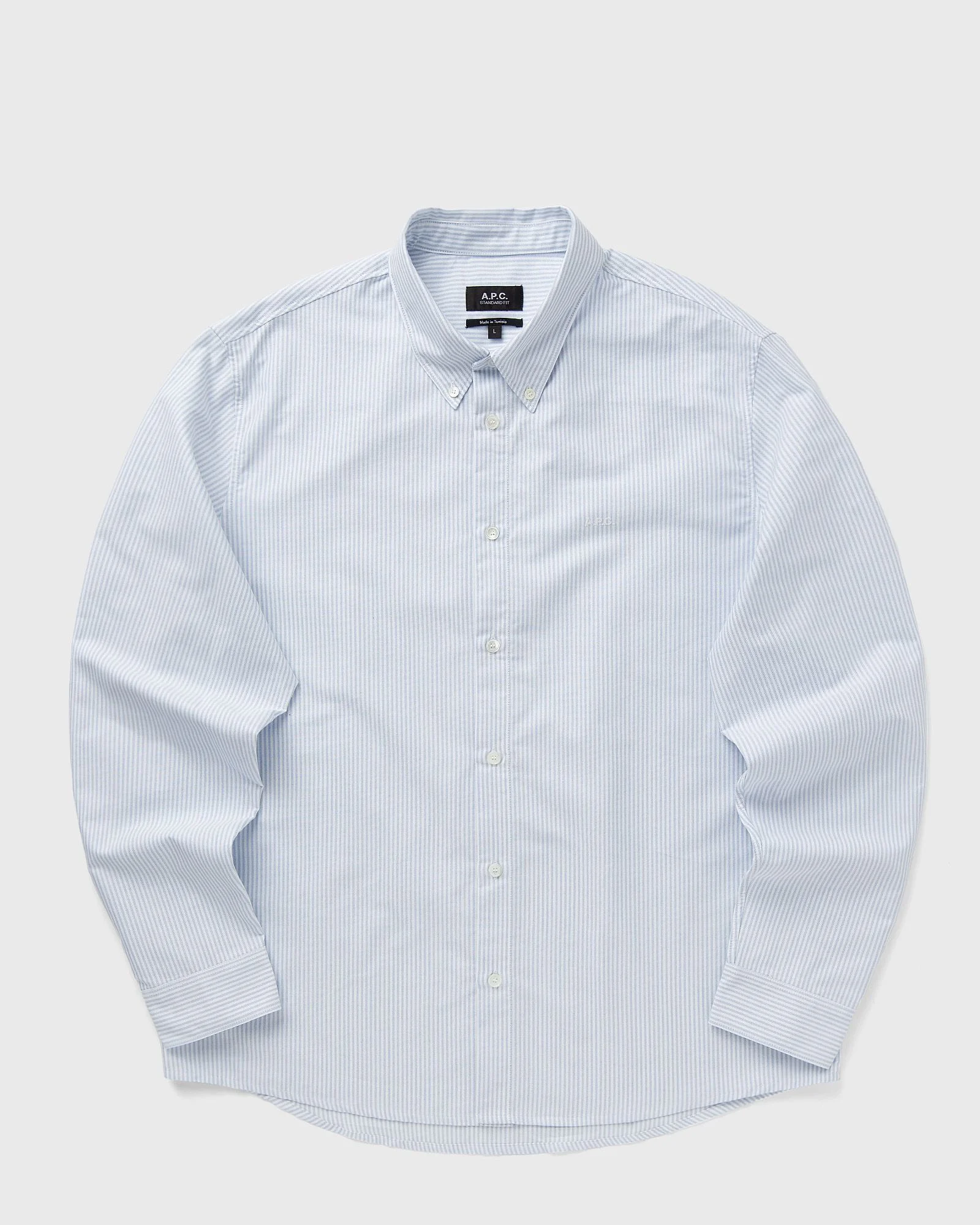 The A.P.C. Greg shirt is a timeless classic for every closet. Made from high-quality cotton, it is comfortable to wear and offers a perfect fit. With its clean design and subtle logo embroidery on the chest, it can be combined in a variety of ways. - Straight cut - Slightly dropped shoulder - Buttoned collar - A.P.C. logo embroidery in the same color on the chest Article number: COGUH-H12499-IAA Gender: men Color: BLEU Material: 100% Cotton