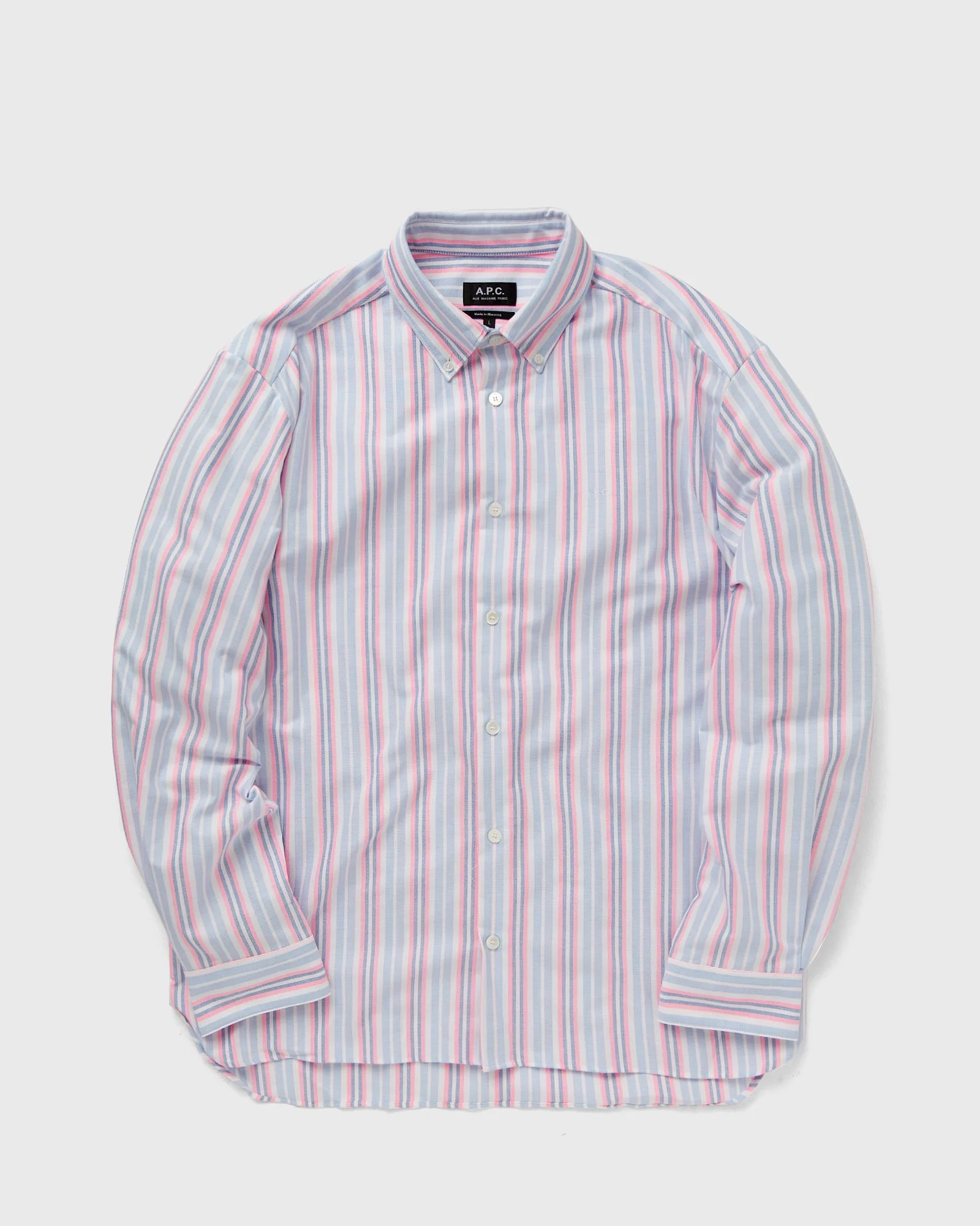 The A.P.C. Mathias chemise is made from a lightweight cotton blend and features a striped pattern. The shirt has a full-length button placket, buttoned cuffs and a curved hem. - Button placket - Buttoned cuffs - Curved hem - Side slits Article number: COGXO-H12586-FAM Gender: men Color: FAM-ROSE FLUO Material: 90% Cotton, 10% Polyester