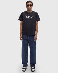 The A.P.C. Standard Grand VPC T-shirt is made from organic cotton with the characteristic V.P.C. logo in a velvet feel. The classic design with a round neckline is made from soft organic cotton. - Round neckline - Short sleeves - V.P.C. logo with velvet feel Article number: COHBM-M26384-TIQ Gender: men Color: TIQ DARK NAVY/ECRU Material: 100% Cotton