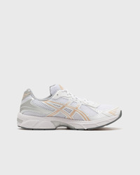 The GEL-1130 by asics pays homage to the ninth edition of the GEL-1000 series, whose design has continued to evolve over the decades. This version retains the traditional aesthetic, but modifies the upper with modern materials like multi-layer mesh inserts and iridescent accents. Additionally, the comfort of this retro running shoe has been re-packaged for the road and features GEL technology in the heel for long-lasting comfort. - GEL technology for optimal cushioning - Breathable upper for good ventilation - Rugged outsole for superior traction Article number: 1202A164-123 Gender: men,women Color: WHITE/BISQUE Material: 100% Synthetic/Textile