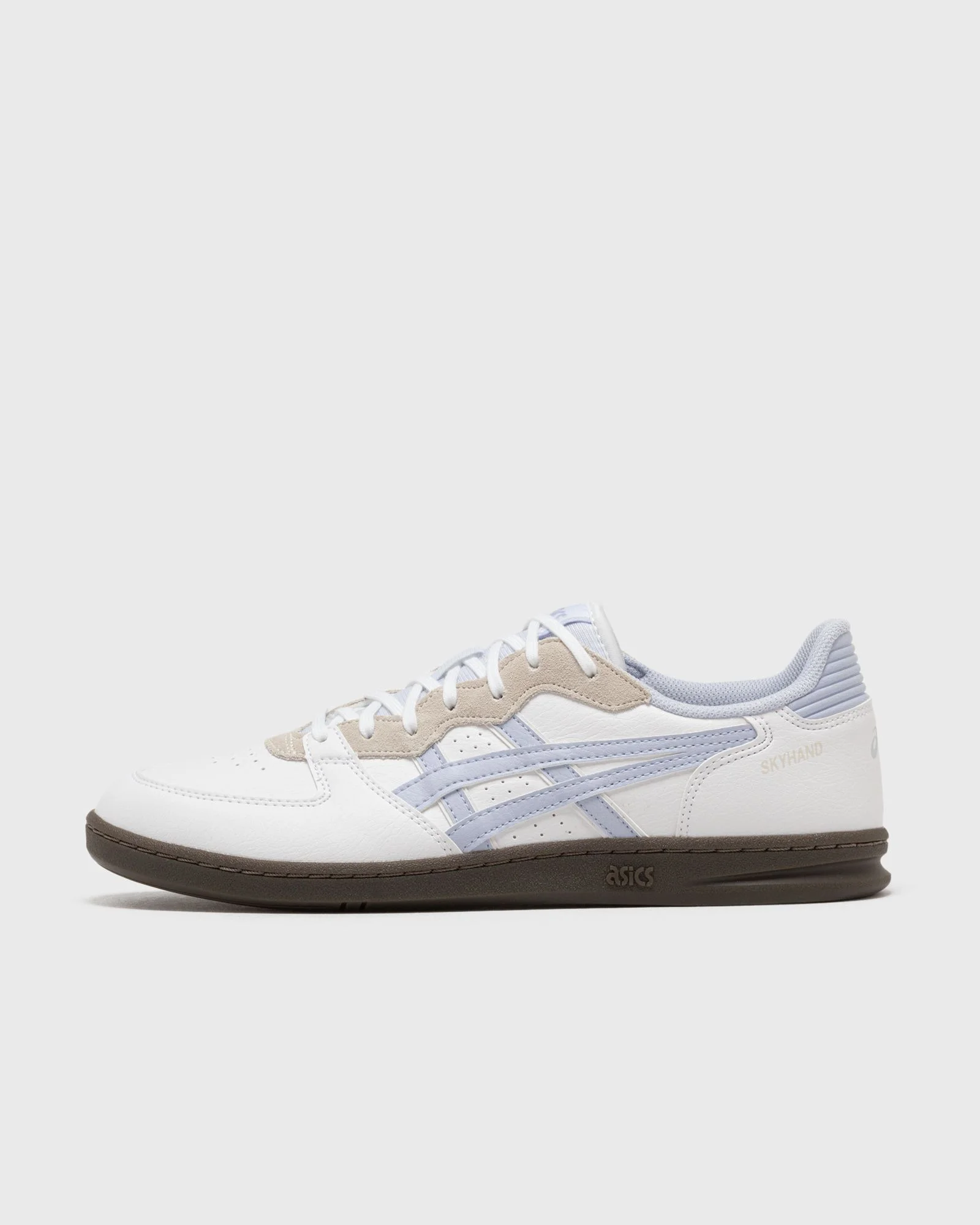 The SKYHAND OG from asics returns with the original handball tradition. Revisiting its design DNA from the 1990s, the narrow-cut court silhouette of this shoe has been updated with modern comfort features. The updated construction of the shoe consists of suede inserts and a rubber outsole. It is also equipped with EVA cushioning in the heel wedge. - EVA heel wedge - Rubber outsole - FLYTEFOAM PROPEL cushioning Article number: 1203A451-103 Gender: men,women Color: WHITE/BLUE FADE Material: 30% Rubber, 70% Leather