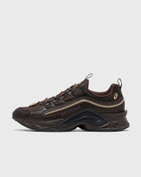 OTTO958 has chosen the PROTOBLAST-CMLVIII sneaker for its second collaboration with asics. The shoe revives originals from the label's archive and reinterprets them. OTTO958's nickname 'O' is depicted on the toe area and the sides are embroidered with the brand's signature lettering. The shoe has been redesigned with underlays and leather overlays, while retaining the iconic details of the GEL-100 on the midfoot and eyelet strip. The GELBURST and GELHOOP 6 basketball shoes served as inspiration for the design of the midsole and toe area. - Details in the midfoot area reflect the design elements of the GEL-100 running series - FF BLAST cushioning offers lightweight shock absorption and responsive rebound Article number: 1203A643-200 Gender: men Color: DARK BROWN/PURE GOLD Material: 30% Rubber, 70% Leather/Synthetic