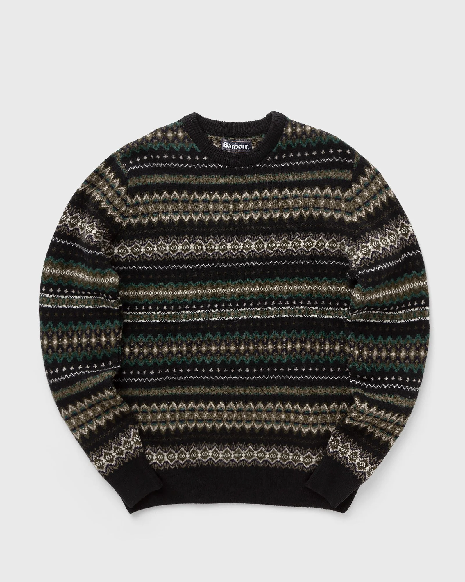 The Barbour Case Fair Isle pullover with a crew neck combines high-quality comfort with a timeless design. It has ribbed details on the collar, cuffs and hem that give it a classic fit and is finished with a Barbour flag label on the left side. - Round neckline - Ribbed collar, cuffs and hem - Soft wool Article number: MKN1027BK52 Gender: men Color: BLACK M Material: 100% Wool