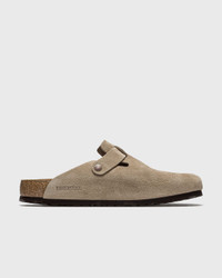 The Birkenstock Boston is a true classic that can easily be worn all year round. Its upper is made from soft suede. An anatomically shaped soft footbed with additional foam insole ensures perfect comfort. - Anatomically shaped cork-latex footbed - Upper material: suede - Sole: EVA - Strap with an individually adjustable pin buckle The use of plant-based materials is part of Birkenstock's effort to offer an environmentally friendly and durable product. Get sustainable products from Birkenstock now at BSTN! Article Number: 560771 Gender: Men, Women Color: Taupe Material: Full: 100% Leather/Textil
