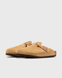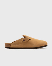 The Birkenstock Boston is a true classic that can easily be worn all year round. Its upper is made of soft suede leather. An anatomically shaped soft footbed provides perfect wearing comfort with an additional foam insert. - Anatomically shaped cork-latex footbed - Upper: suede - Sole: EVA - Strap with an individually adjustable thorn buckle Article number: 1026181 Gender: men,women Color: LATTE CREAM Material: Full: 100% Leather/Synthetic