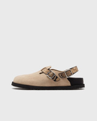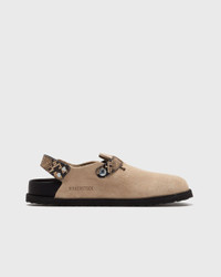 Tokio Cazador snake-effect leather-trimmed suede clogs Beige