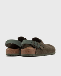 The Birkenstock Tokio clog is a variation of the classic Boston. The clog is characterized by its ankle strap and can be worn at any time of year. The upper material is made from particularly soft suede, which hugs the foot like a second skin. - Anatomically shaped cork-latex footbed - Upper material: suede - Footbed lining: suede - Sole: EVA - Individually adjustable metal buckles Article Number: 1029912 Gender: Men, Women Color: THYME Material: 50% Leather, 50% Corc