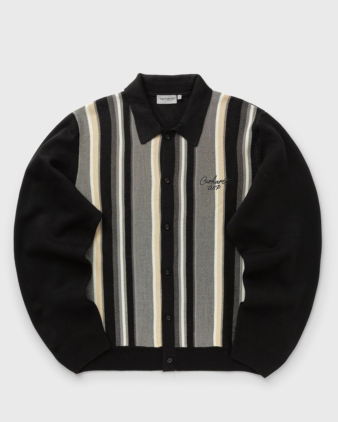 The Bainter Cardigan by Carhartt WIP is a medium-weight knit made from acrylic yarn. The style features a collar, contrasting stripes on the front, and an embroidered graphic on the chest. - 100% acrylic, 12 gg - Button placket - Yarn-dyed - Embroidered graphic Article Number: I035397-3BA.XX Gender: Men Color: BAINTER STRIPE, GRAPHITE Material: 100% Acrylic
