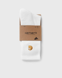 The anatomically shaped Chase Socks from Carhartt are made of soft knit with high cotton content and ribbed cuffs on the top and an inner sole made of French terry for extra comfort. The design is finished off with the classic Carhartt WIP logo. Article Number: I029421-00R.XX Gender: Men, Women Color: WHITE / GOLD Material: Full: 80% Cotton, 20% Polyester