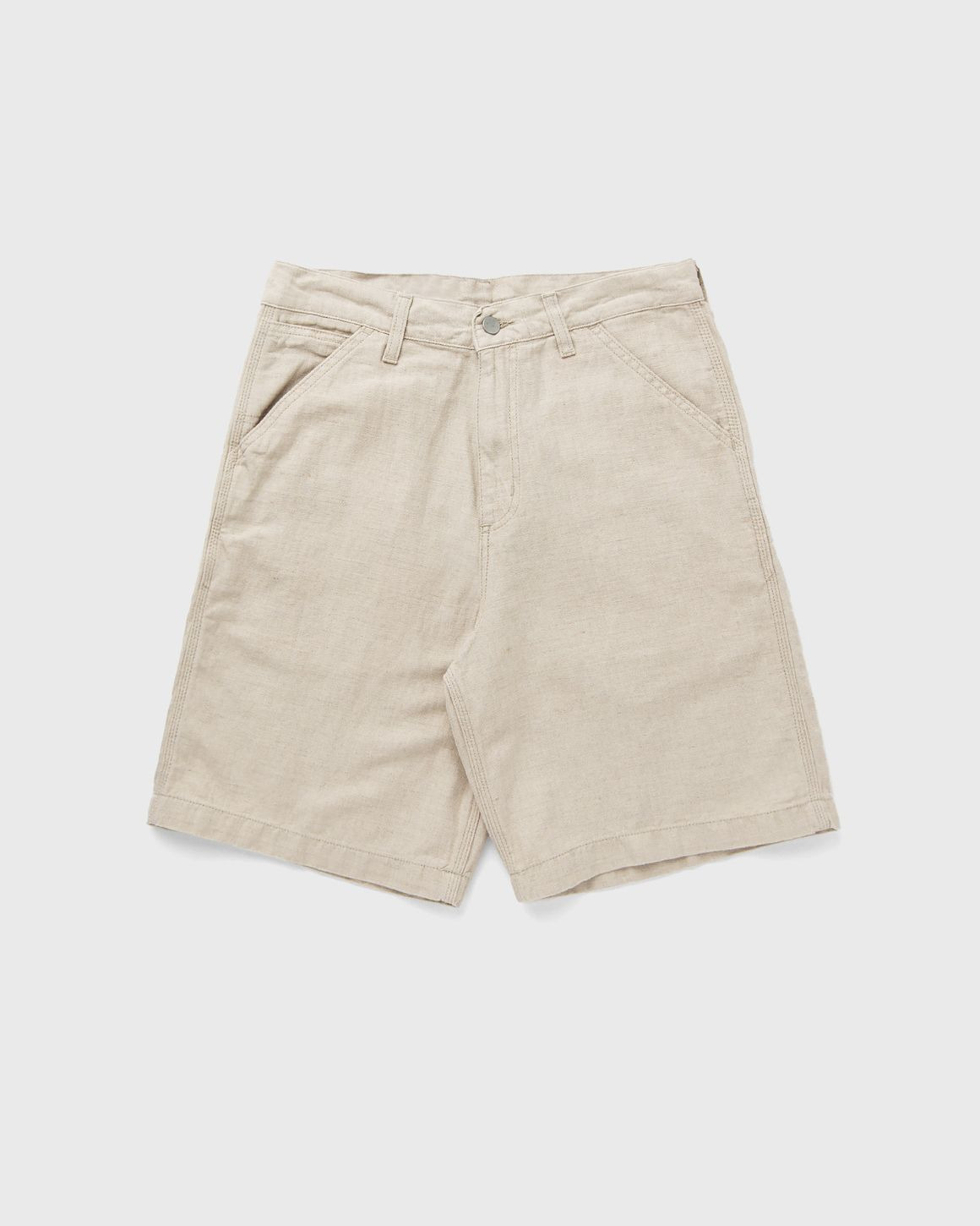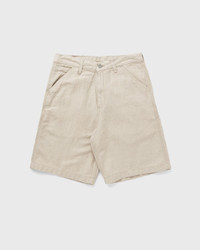The Cooper Short by Carhartt WIP is made from a mid-weight cotton-linen blend with a herringbone pattern that has been piece-dyed for a softer feel and a more complex colorway. The style has a wide cut with a regular waist. A woven square label on the back pocket rounds off the design. - Relaxed fit, regular rise - Piece-dyed - Triple seams - Bar-tacked seams in frequently used areas - Two side pockets, one back pocket - Square label Article Number: I034805-2LP.02 Gender: Men Color: FLEUR DE SEL RINSED Material: 62% Cotton, 38% Linen