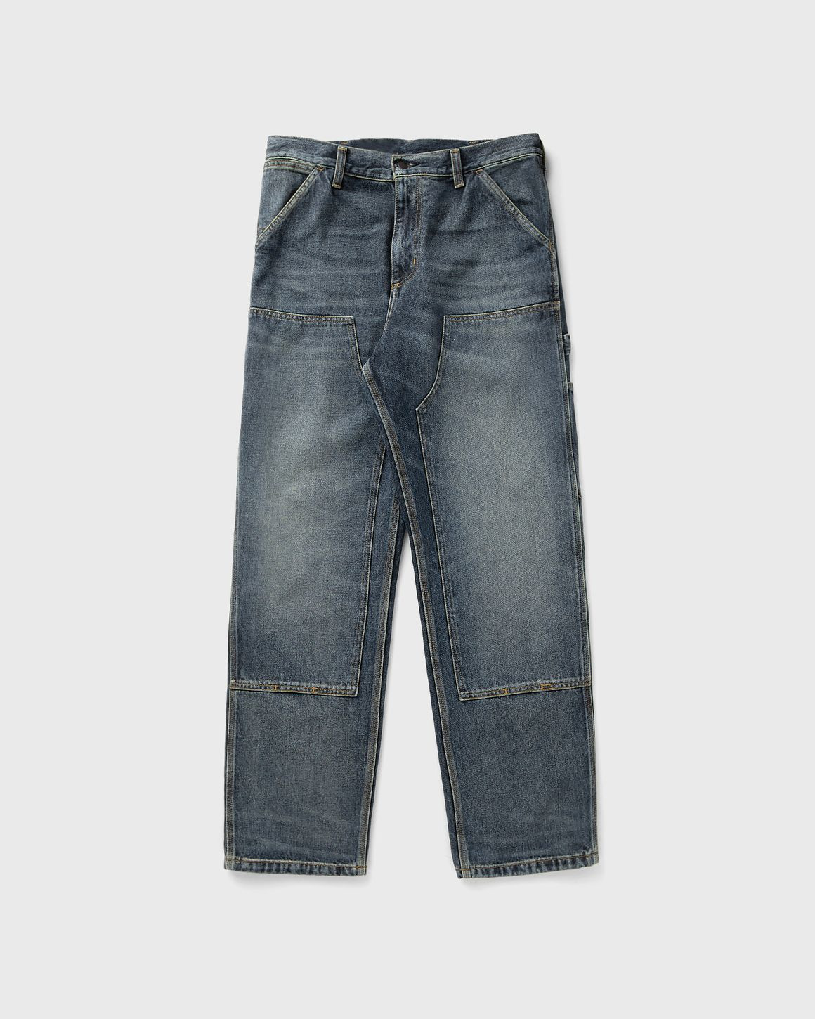 The loose and straight-cut Double Knee Pant by Carhartt WIP is made from Smith denim, a heavy cotton fabric. Reinforced, double-layered knee sections, bar seams, rivet details, tool pockets and a hammer loop are reminiscent of the pants' utility origins. - Relaxed straight fit - Regular waist - Triple seams - Tool pockets and hammer loop - Zip fly - Square label Article Number: I032699-01.4Q Gender: Men Color: BLUE WORN USED WASH Material: 100% Cotton