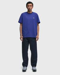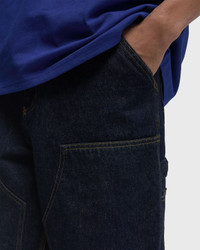 The loose and straight-cut Double Knee Pant by Carhartt WIP is made from Smith denim, a heavy cotton fabric. Reinforced, double-layered knee sections, bar seams, rivet details, tool pockets and a hammer loop are reminiscent of the pants' utility origins. - Relaxed straight fit - Regular waist - Triple seams - Tool pockets and hammer loop - Zip fly - Square label Article Number: I032699-01.02 Gender: Men Color: Blue Material: 100% Cotton