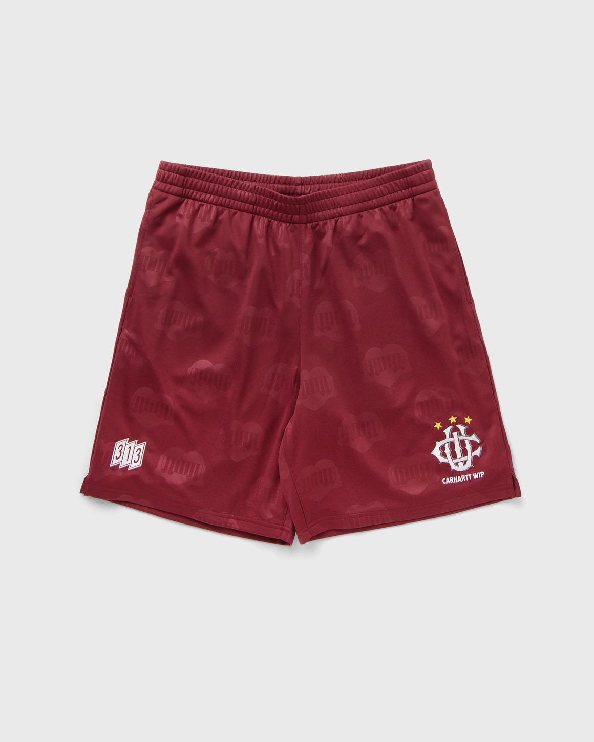 The Carhartt WIP Hartt's Football Short is made from lightweight polyester and has a relaxed fit with a regular waist. The style features a jacquard motif and embroidered graphic. - Relaxed fit, regular rise - Elastic waistband with drawcord - Back and side pockets - Embroidered graphic Article Number: I034623-2UG.XX Gender: Men Color: HEART TRAIN JACQUARD, MULBERRY Material: 100% Polyester