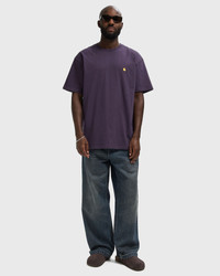 The Chase Tee from Carhartt WIP is made from combed cotton jersey and has a loose fit. The design is rounded off with an embroidered Carhartt motif. - Ribbed crew neck - Short sleeves - Embroidered logo Article number: I026391-37Y.XX Gender: men Color: Lakers / Gold Material: 100% Cotton