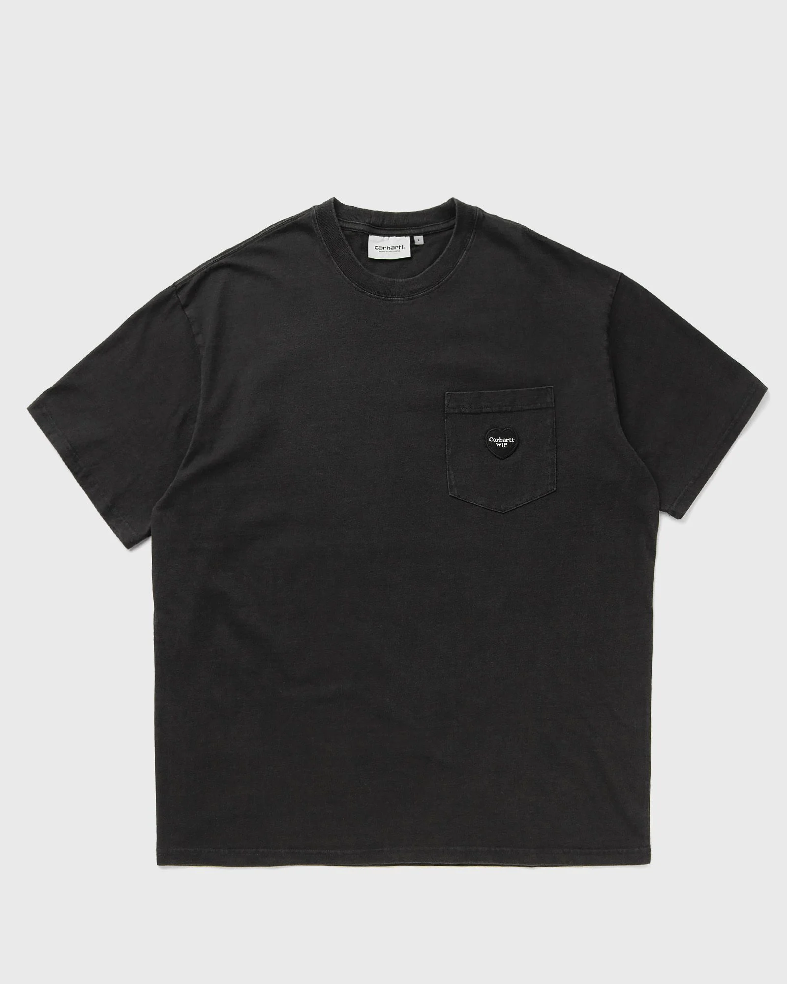 The loose fit S/S Ingo Pocket T-shirt from Carhartt WIP is made from a medium-weight cotton fabric. A heart patch on the chest pocket rounds off the design. - Loose fit - Short sleeves - Chest pocket - Heart patch Article number: I034486-89.GD Gender: men Color: BLACK GARMENT DYED Material: 100% Cotton