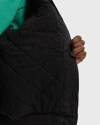 The Stanton Jacket by Carhartt WIP is made from heavy cotton fabric that has been stonewashed to give it a softer feel and a slightly worn look. The jacket has a quilted lining on the body and sleeves. There are two pockets on the front and a chest pocket on the inside. Triple stitching in high-wear areas provides additional durability. A woven square label completes the design. - Quilted lining - Sleeve lining: 100% nylon - Triple stitching - Zipper - Two pockets with flap and button - Ribbed cuffs and hem - Buttons and zipper pull with logos - Square label Article number: I035617-89.06 Gender: men Color: black Material: 100% Cotton