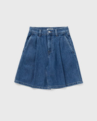 The loose fit Carhartt WIP Alta shorts are made from a heavy cotton denim and have a lighter look thanks to stone bleaching. The shorts feature pleats and a woven square label. - Loose fit, high waist - Pleats - Saddle stitching - Two side pockets, two back pockets - Zipper - Square label Article Number: I033345-01.06 Gender: Women Color: Blue stone washed Material: 100% Cotton