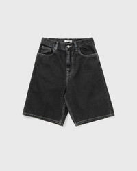 The Carhartt WIP Brandon shorts have a 5-pocket design and are made from a heavy cotton twill with a regular rise. The style has been piece-dyed for a softer feel and a more complex color scheme and features contrast stitching. A woven square label completes the design. - Loose fit, regular rise - Piece-dyed - Saddle stitching - Contrast stitching - Bar tacking in high-wear areas - Script logo on the inside of the waistband - Zip fly - Square label Article Number: I034839-89.4J Gender: Women Color: BLACK STONE DYED Material: 100% Cotton