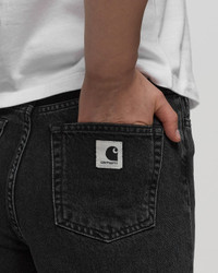 The Jane Pants by Carhartt WIP are made from organic cotton denim and offer a unique color and comfort thanks to a special treatment. The trousers with a high waistband and slightly flared leg have a loose fit. A characteristic square label on the back pocket rounds off the design. - Loose fit, high waistband - Back insert - Bar-tacked seams in high-wear areas - Square label - Zip fly This item is partly made of certified, recycled and sustainable materials, reducing the global amount of waste and conserving primary raw materials. Discover a wide range of sustainable items now at BSTN! Article Number: I030497-89.60 Gender: Women Color: black Material: 100% Cotton