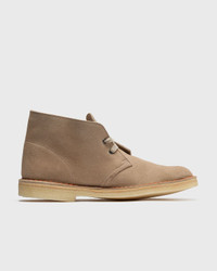 Clarks Desert Boots have remained almost unchanged since the 1950s, making them a true classic. The Desert Boots come in premium quality leather or suede, and convince thanks to the crepe sole and guaranteed stylish design as well as pleasant wearing comfort all year round. Article Number: 26155527 Gender: Men Color: SAND SUEDE Material: 30% Rubber, 70% Leather