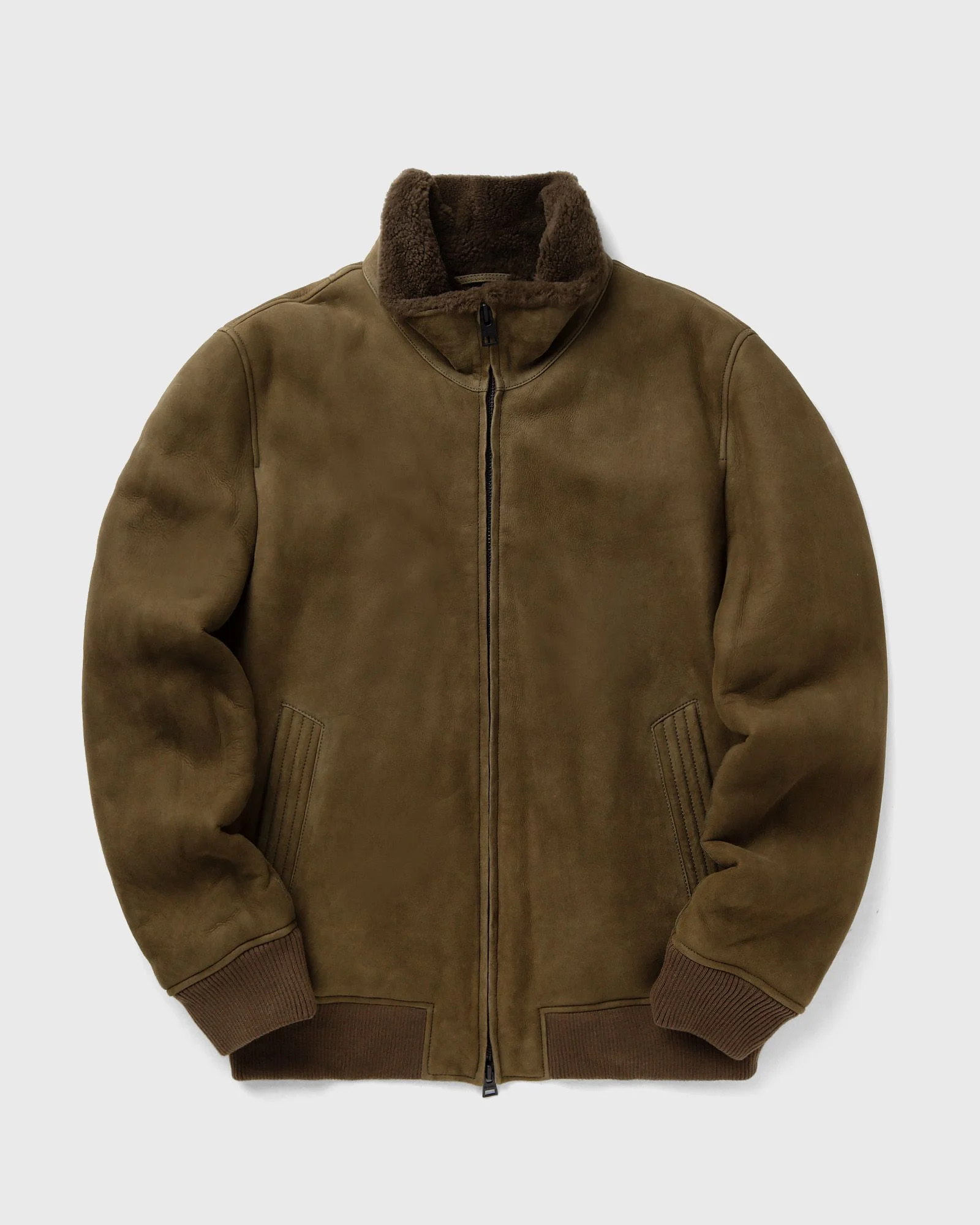 This Spanish tanned shearling jacket from Closed has an exceptionally soft fur side and a tonal matte suede finish. It has a regular-fit silhouette with ribbed hems and features notable details such as a two-way zipper, welt pockets, a signature back yoke and a soft shearling collar. - Two-way zipper - Side pockets - Shearling collar Article number: C87877-82X-22-694 Gender: men Color: MARSH GREEN Material: 100% Leather