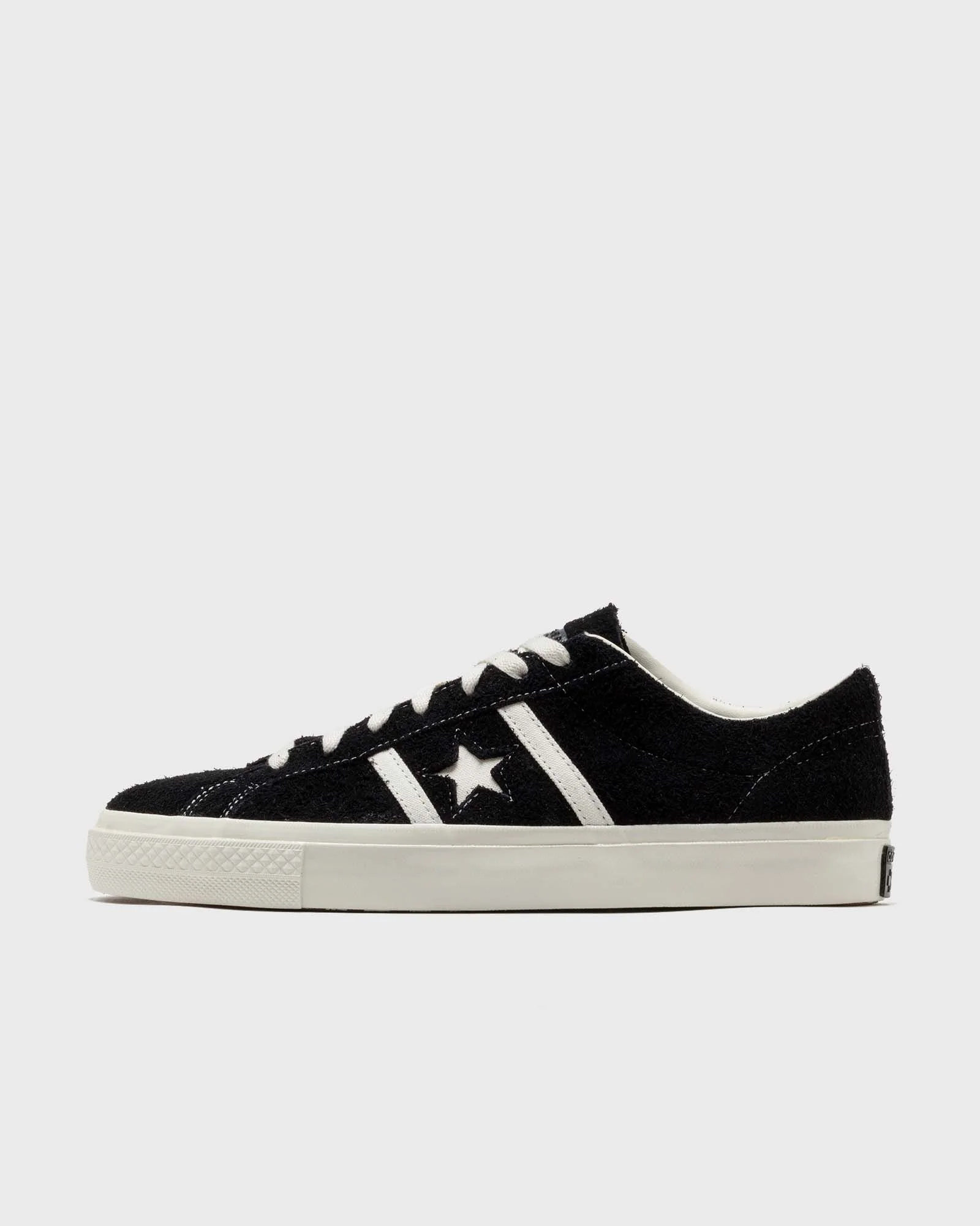 The Converse One Star has been a hit in skateboarding culture since its first release. The latest version of the low-top shoe with star on the outside gets a casual retro look with vintage suede. A CX foam insole provides impact cushioning and the elastic tongue ensures a non-slip fit. - Low-top skateboarding shoe with vintage-style rubber-reinforced suede upper - CX foam insole for cushioned impact protection - Rough suede for a vintage look and even more durability - Elastic tongue for a non-slip fit - Durable cotton laces Article Number: A06426C Gender: Men, Women Color: BLACK/EGRET/EGRET Material: 30% Rubber, 70% Leather/Textile