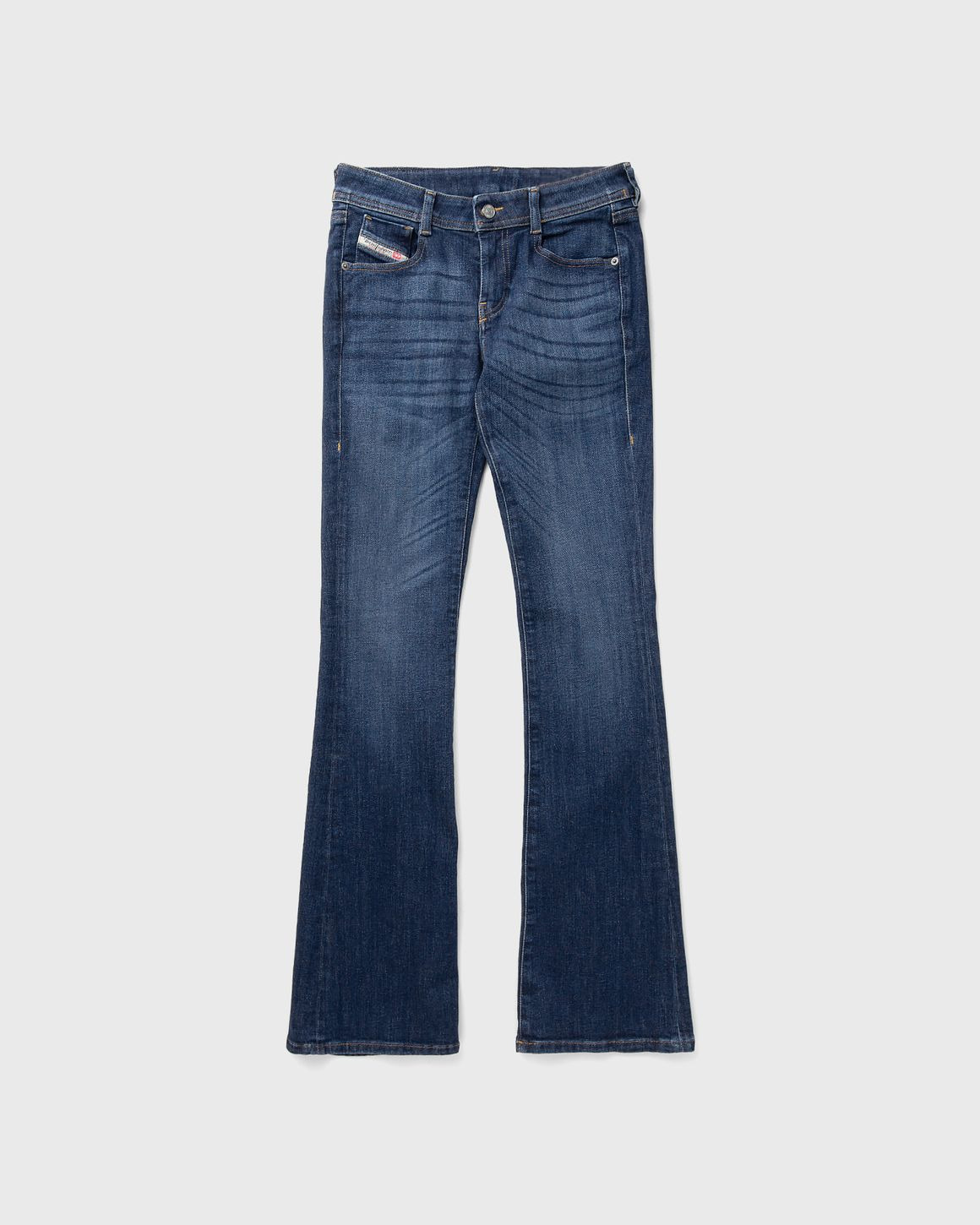The Diesel 1969 D-EBBEY TROUSERS are a bootcut style with a low waistband that is slightly higher at the back. The jeans are cut close to the body from the hips to the knees and made from stretch denim with recycled cotton content in a dark blue wash and clean finish. - Bootcut and flare - Belt loops Article Number: A11003-09M73-01 Gender: Women Color: DENIM Material: 95% Cotton, 5% Spandex/elastane