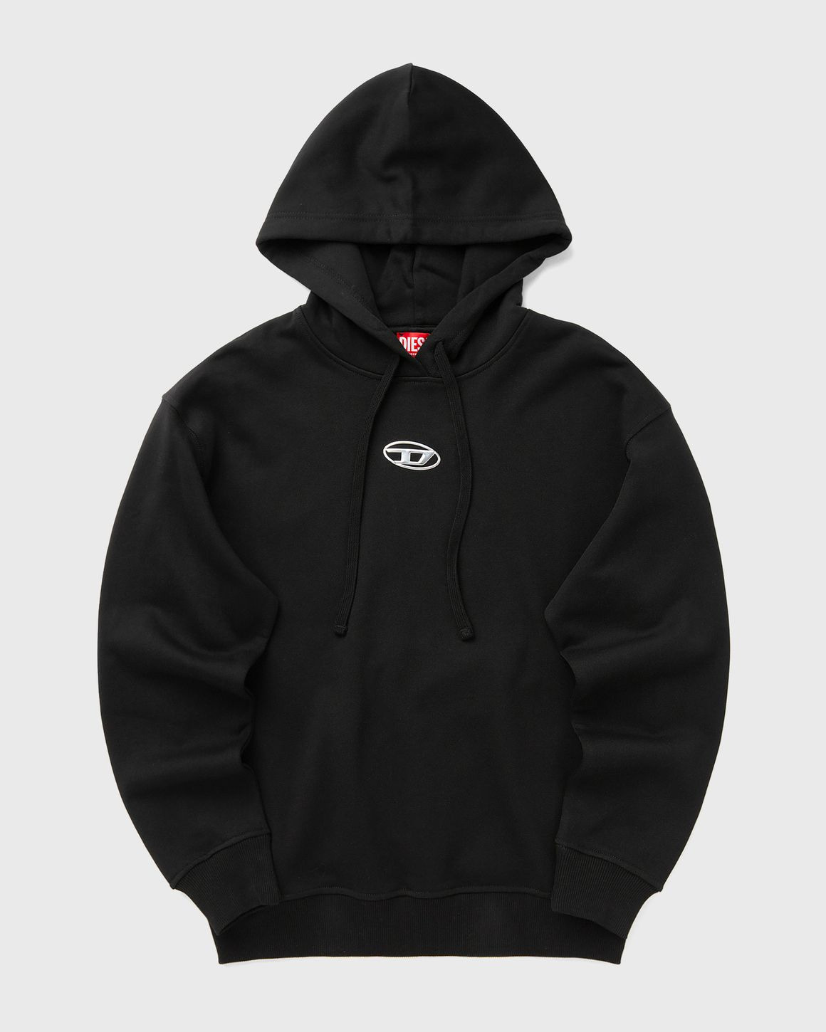The Diesel F-buxt-hood-od is made from loopback jersey, crafted from organic cotton. The hoodie is cut for a relaxed fit and decorated with the iconic Oval D on the front - the silver-chrome logo is injection-molded and mimics the look of a metal plaque. - Relaxed fit - Drawstring fastening on the hood - Ribbed cuffs and hem Article Number: A19448-0BMBJ-9XX Gender: Women Color: BLACK BLACK BLACK Material: 100% Cotton