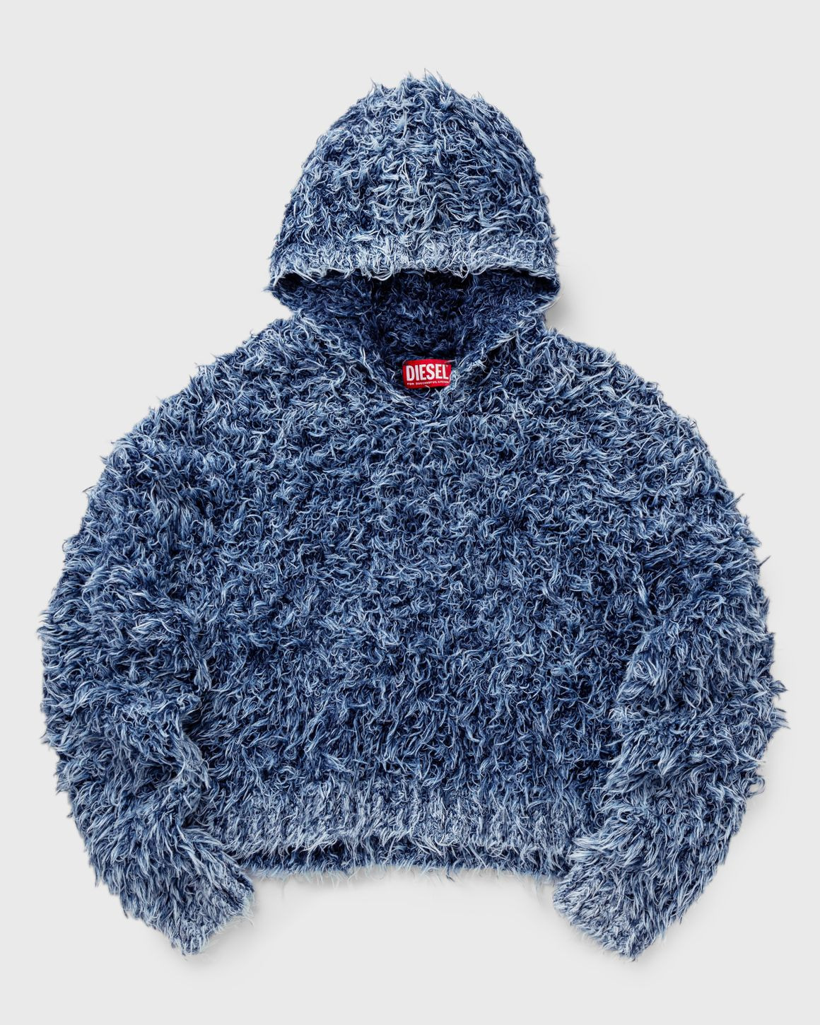 The M-Dolly hoodie from Diesel comes in a loose, voluminous fit and features an innovative knit design that mimics the curly texture of fur. It is made from indigo-dyed yarns with a high organic cotton content and finished with a stone wash treatment that gives it the distinctive faded hue of denim, the Diesel DNA fabric. - Loose fit - Hood - Ribbed cuffs and hem Article Number: A16567-0KNAE-8NY Gender: Women Color: ANCIENT WATER Material: 88% Cotton, 12% Polyamide