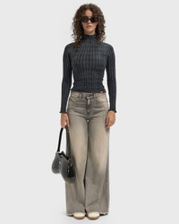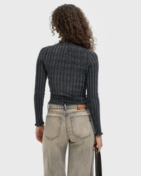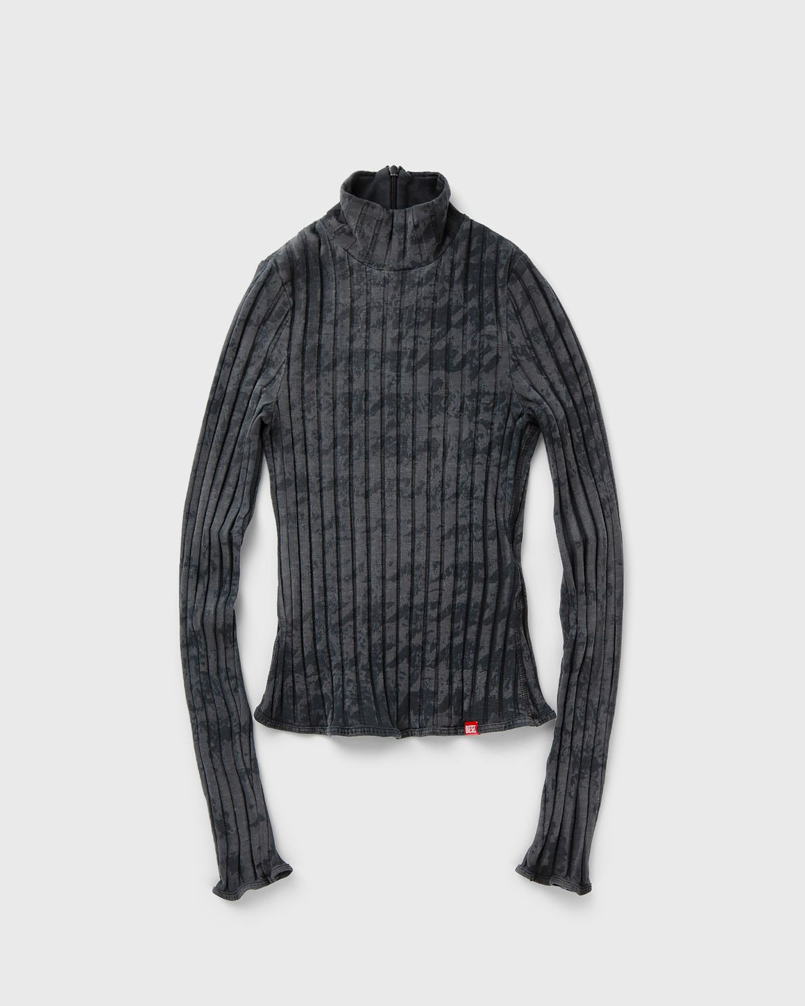 The figure-hugging T-Clawa-PDP top from Diesel combines minimalist style with feminine details. The high collar and slim fit give it a modern silhouette. The textured fabric is soft, supple, and comfortable to wear. - High collar - Slim fit - Long sleeves Article Number: A21603-0QKBU-02A Gender: Women Color: GREY Material: 95% Cotton, 5% Spandex/elastane