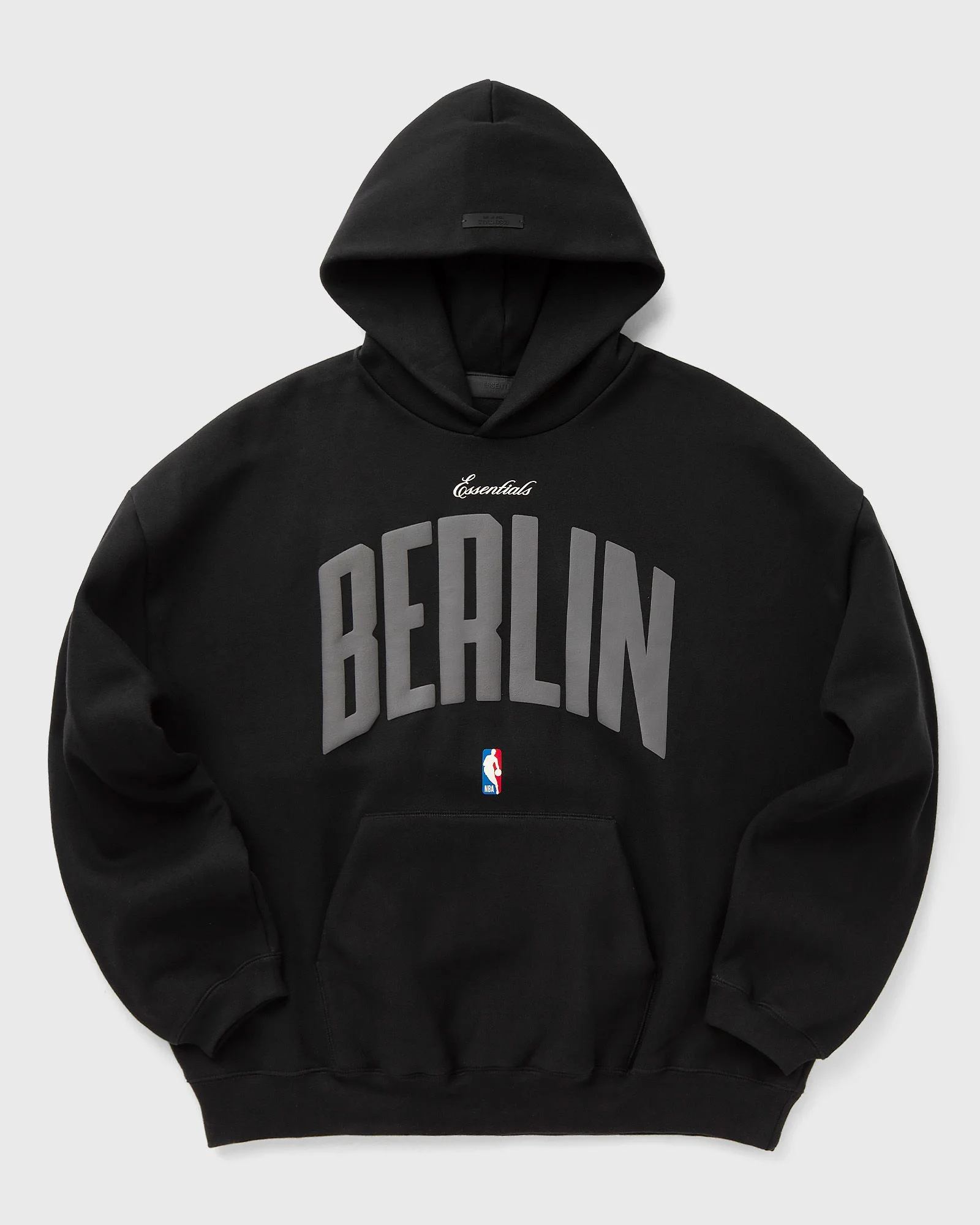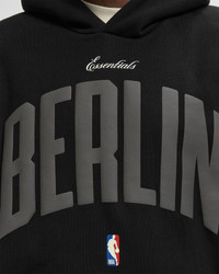 The Fear of God Essentials Berlin 90s Hoodie combines basketball culture with clean design. Made from heavyweight fleece, it offers a relaxed silhouette in a 90s fit with a striking Berlin puff print and official NBA logo. Ribbed cuffs, a kangaroo pocket, and the rubberized Fear of God Essentials label complete the urban look. - Essentials 90s fit: relaxed - NBA logo - Fear of God label - Kangaroo pocket - Ribbed knit cuffs and hem - BSTN EU exclusive Article number: 192EU266701F Gender: men Color: BLACK Material: 80% Cotton, 20% Polyester