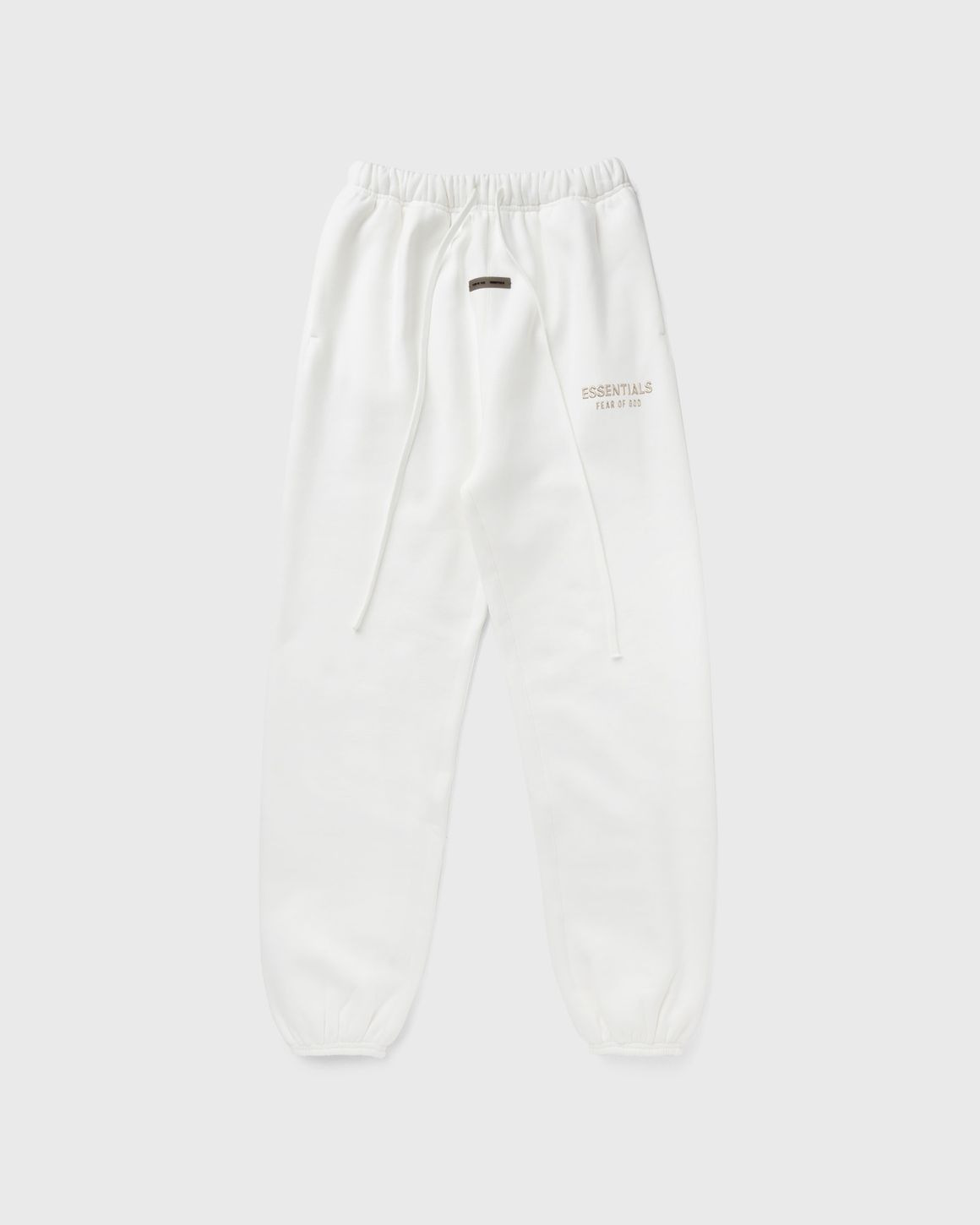 The Womens Classic Sweatpant from Fear of God is made from 380 g/m² fleece and offers both freedom of movement and structure. The classic fit has a relaxed leg that tapers to an elasticated waistband. A beveled metallic logo adorns the left leg. Further details include a covered elastic waistband, extended drawstrings, side seam pockets and an ankle band. A rubberized Fear of God Essentials label at the center front completes the design. - Womens Classic Fit - loose fit - Beveled metallic logo - Encased elastic waistband - Heavy drawcord with rubberized lace - Side seam pockets - Transparent rubberized label Article Number: 130SP255444FW-323 Gender: Women Color: CLOUD WHITE Material: 80% Cotton, 20% Polyester