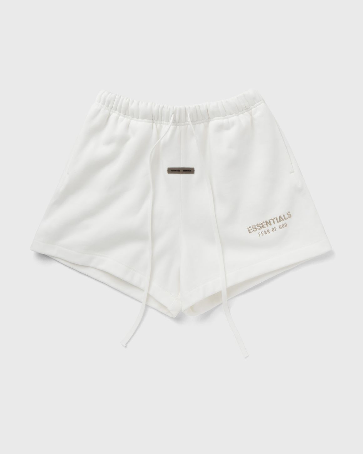 The Fear of God Womens Classic Sweatshort is made from 380 g/m² fleece and offers exceptional comfort and structure. The casual design with a mid-length leg is reminiscent of the soccer style of the 90s. A beveled metallic logo adorns the left leg. Details include side pockets and a covered elasticated waistband with a drawstring. A translucent, rubberized logo label at the center front completes the design. - Womens Soccer-Fit - loose, mid-length - Beveled metallic logo - Encased elastic waistband - Heavy drawcord with rubberized tip - Side seam pockets - Translucent, rubberized label Article Number: 160SP255714FW-323 Gender: Women Color: CLOUD WHITE Material: 80% Cotton, 20% Polyester