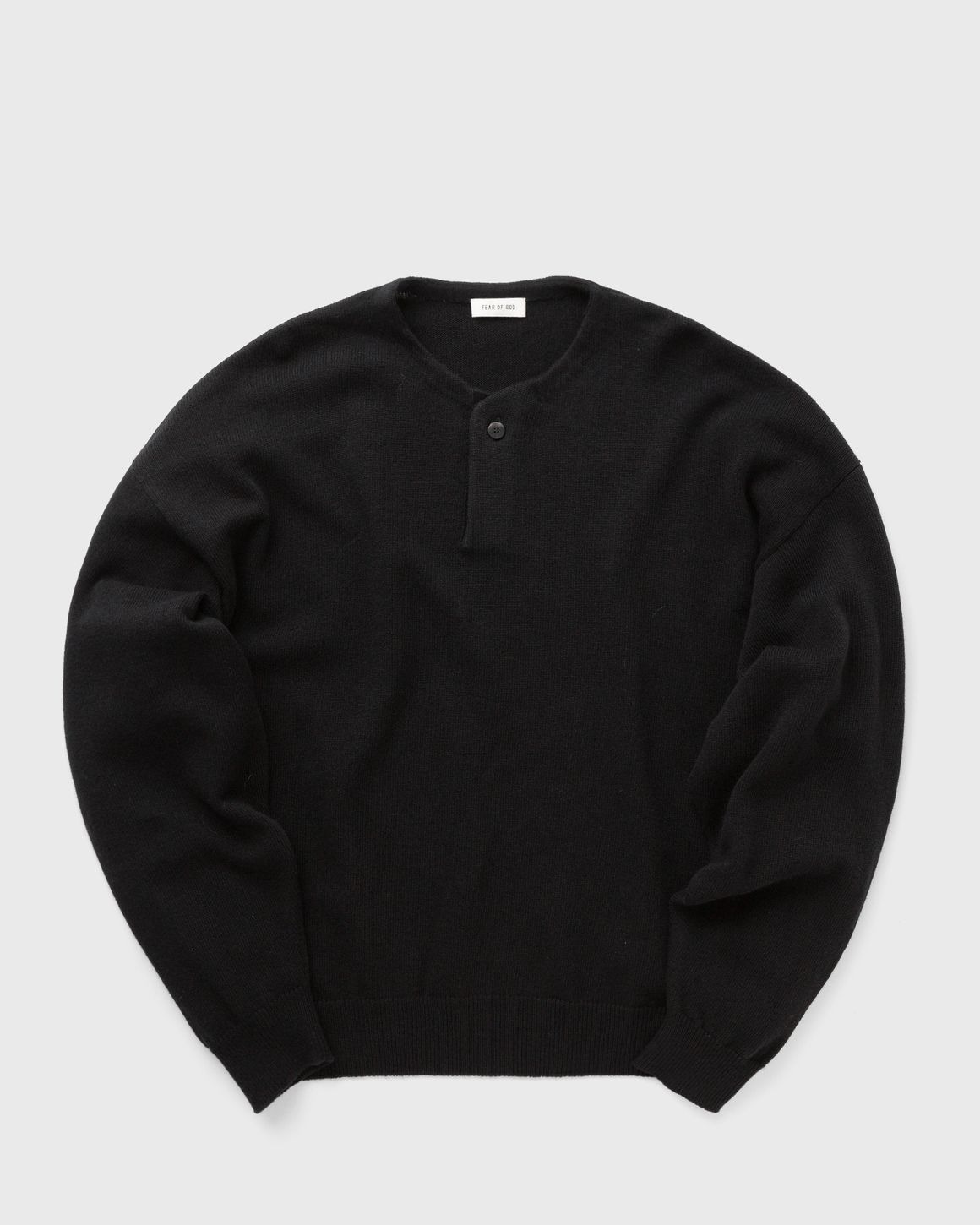 The Fear of God Fine Knit Henley is made in Italy from 100% extra-fine baby merino wool. The knit piece has soft proportions with dropped shoulders and a round neckline with button placket. A Fear of God label is sewn onto the back collar. - Round neckline - Button placket - Fear of God label on the neck Article Number: FGE220-2041LAW-001 Gender: Men Color: BLACK Material: 100% Merino wool