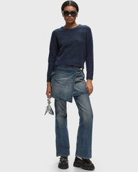 With the heavy washed denim flared skirt jeans from Ganni, you have three looks in one. The skirt is detachable with buttons on the belt loops and has a button fastening on the side as well as a cargo pocket. Depending on your mood, you can wear it solo or as a layering piece for a complete look. The five-pocket style trousers can also be worn on their own and can be combined in a variety of ways. - 5-pocket style with zipper and button fastening - Skirt is detachable with buttons on the belt loops - Skirt with button fastening on the side - Cargo pocket This item is partly made of certified, recycled and sustainable materials, reducing the global amount of waste and conserving primary raw materials. Discover a wide range of sustainable items now at BSTN! Article Number: J1562-567 Gender: Women Color: MID BLUE VINTAGE Material: 100% Cotton