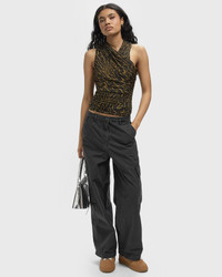 Printed Shiny Jersey Sleeveless Ruched Blouse