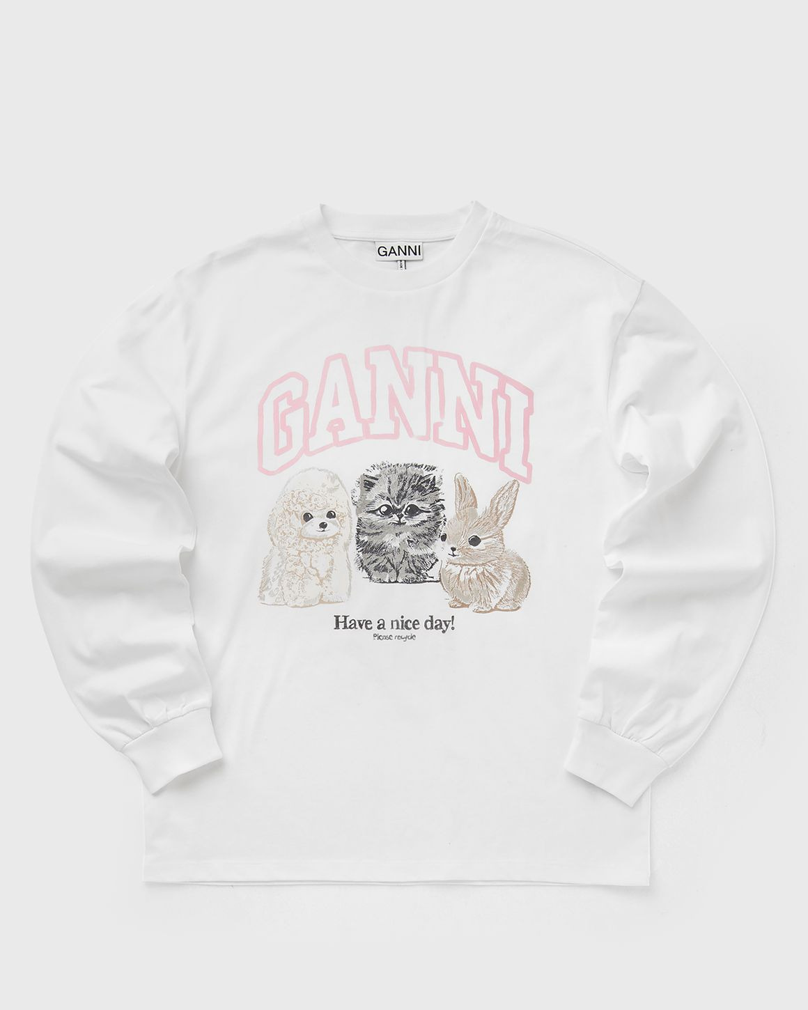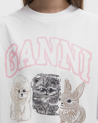 The Re-cut Heavy Jersey Animals long-sleeved shirt by Ganni is made from soft jersey for a casual look that is also super comfortable. An animal print graphic on the front rounds off the design. - Round neckline - Long sleeves - Ribbed cuffs - Graphic with animal print Article Number: T4275-151 Gender: Women Color: BRIGHT WHITE Material: 100% Cotton